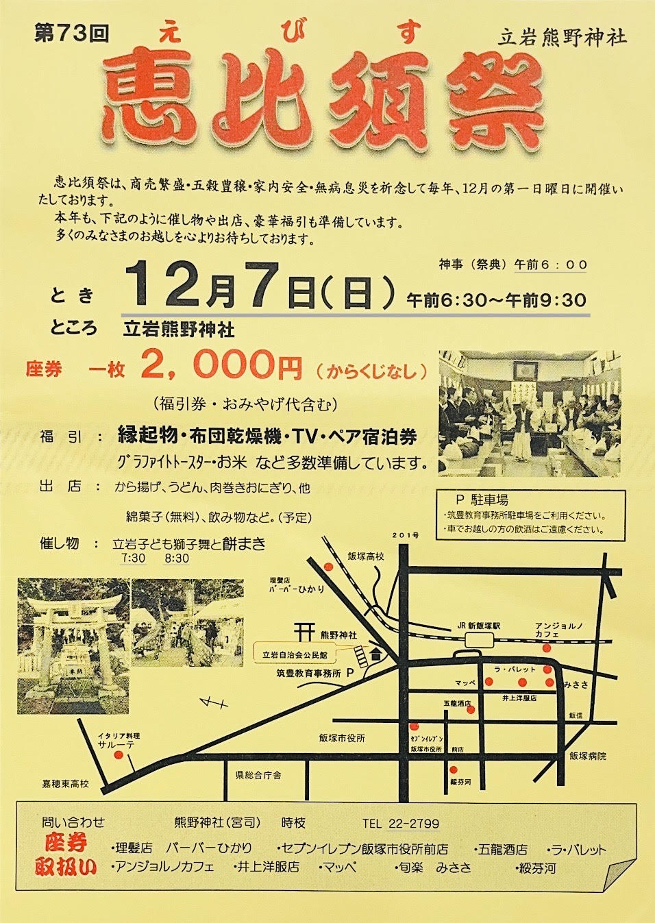 飯塚市立岩の熊野神社で、商売繁盛などを願う「えびす祭」が開かれました。